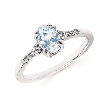 0.09Ctw Diamond & Created Aquamarine Birthstone Ring